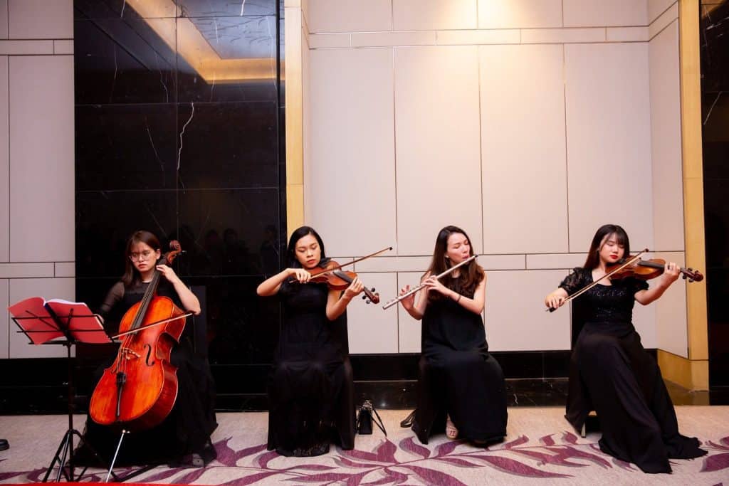 Với kinh nghiệm lâu năm trong lĩnh vực tổ chức sự kiện, Fevent cam kết mang đến không gian âm nhạc chuyên nghiệp và độc đáo, góp phần nâng tầm sự kiện của bạn. Liên hệ ngay với chúng tôi để được tư vấn và đặt lịch biểu diễn.