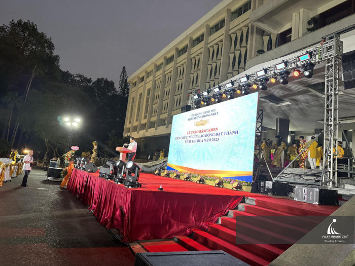 Nội Dung Trình Diễn: Sân khấu là nơi diễn ra các hoạt động chính của sự kiện, từ bài phát biểu của diễn giả, các tiết mục văn nghệ, cho đến các màn trình diễn tương tác. Những hoạt động này không chỉ thu hút sự chú ý của khán giả mà còn giúp họ hiểu rõ hơn về thông điệp mà sự kiện muốn truyền tải. Ví dụ, trong một hội thảo về môi trường, các bài thuyết trình về tình trạng biến đổi khí hậu được kết hợp với hình ảnh và video trực quan trên sân khấu sẽ có tác động mạnh mẽ hơn đến người nghe.